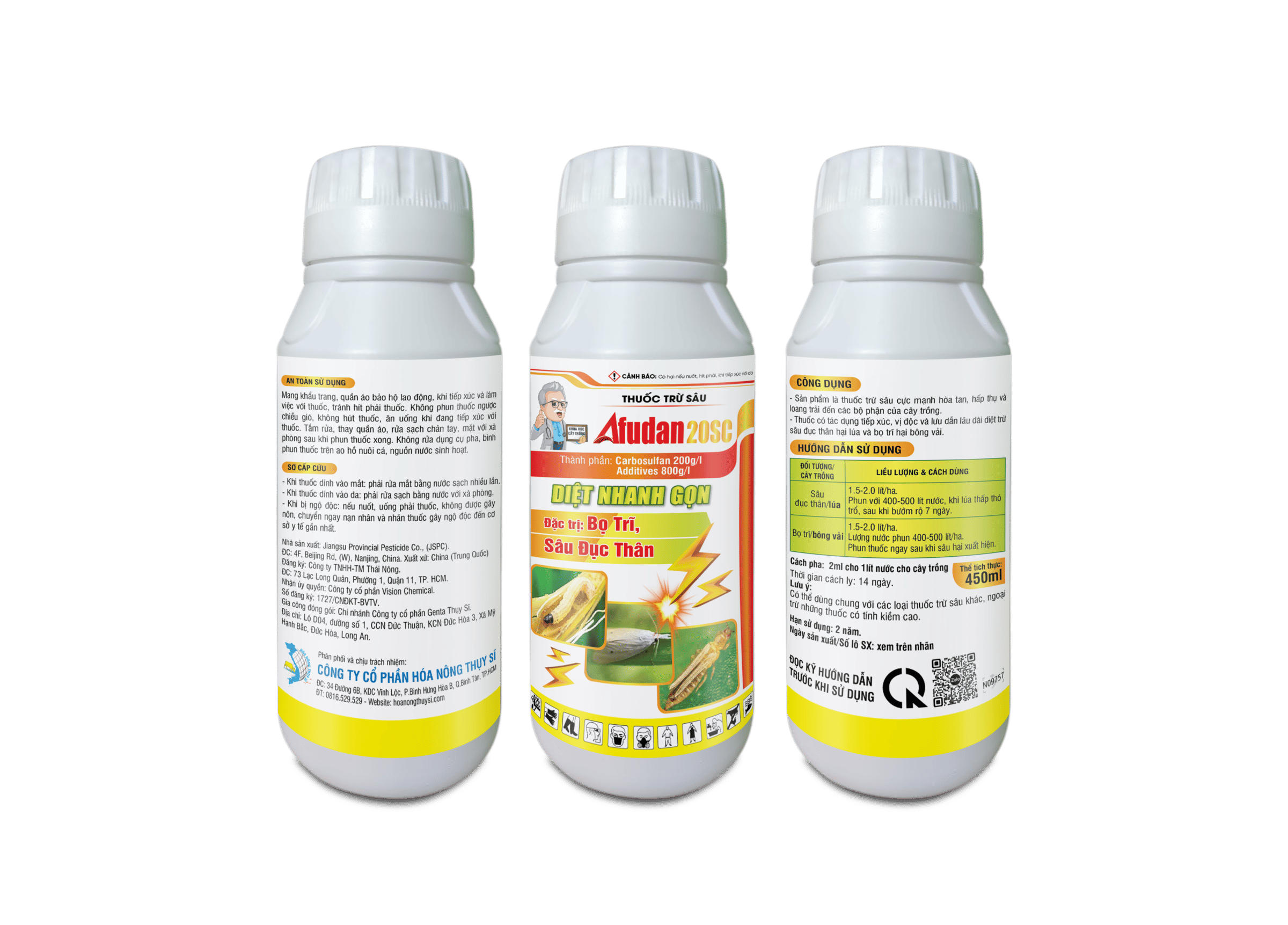 AFUDAN 20SC là thuốc trừ sâu thế hệ mới, tác động tiếp xúc và vị độc cực mạnh, làm tê liệt thần kinh trung ương của sâu hại chỉ trong thời gian ngắn sau khi phun. Sản phẩm đặc biệt hiệu quả với hai đối tượng khó trị là sâu đục thân trên lúa và bọ trĩ hại bông vải. AFUDAN 20SC giúp cây lúa khỏe, bông vải nở đều, đậu trái cao.